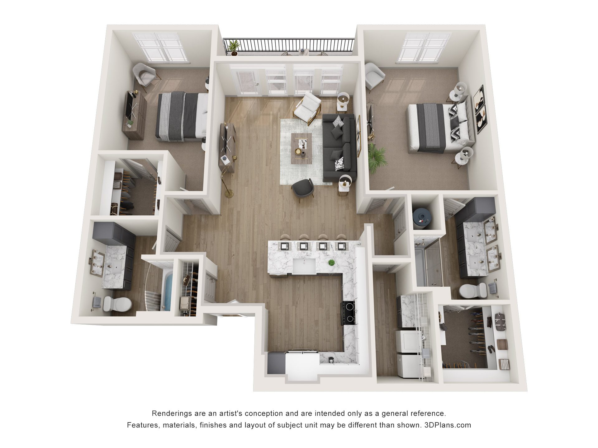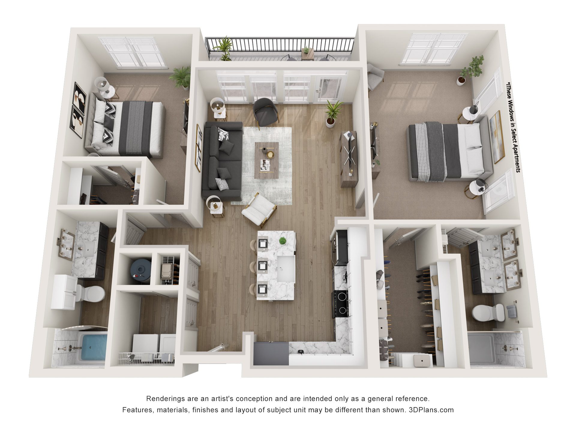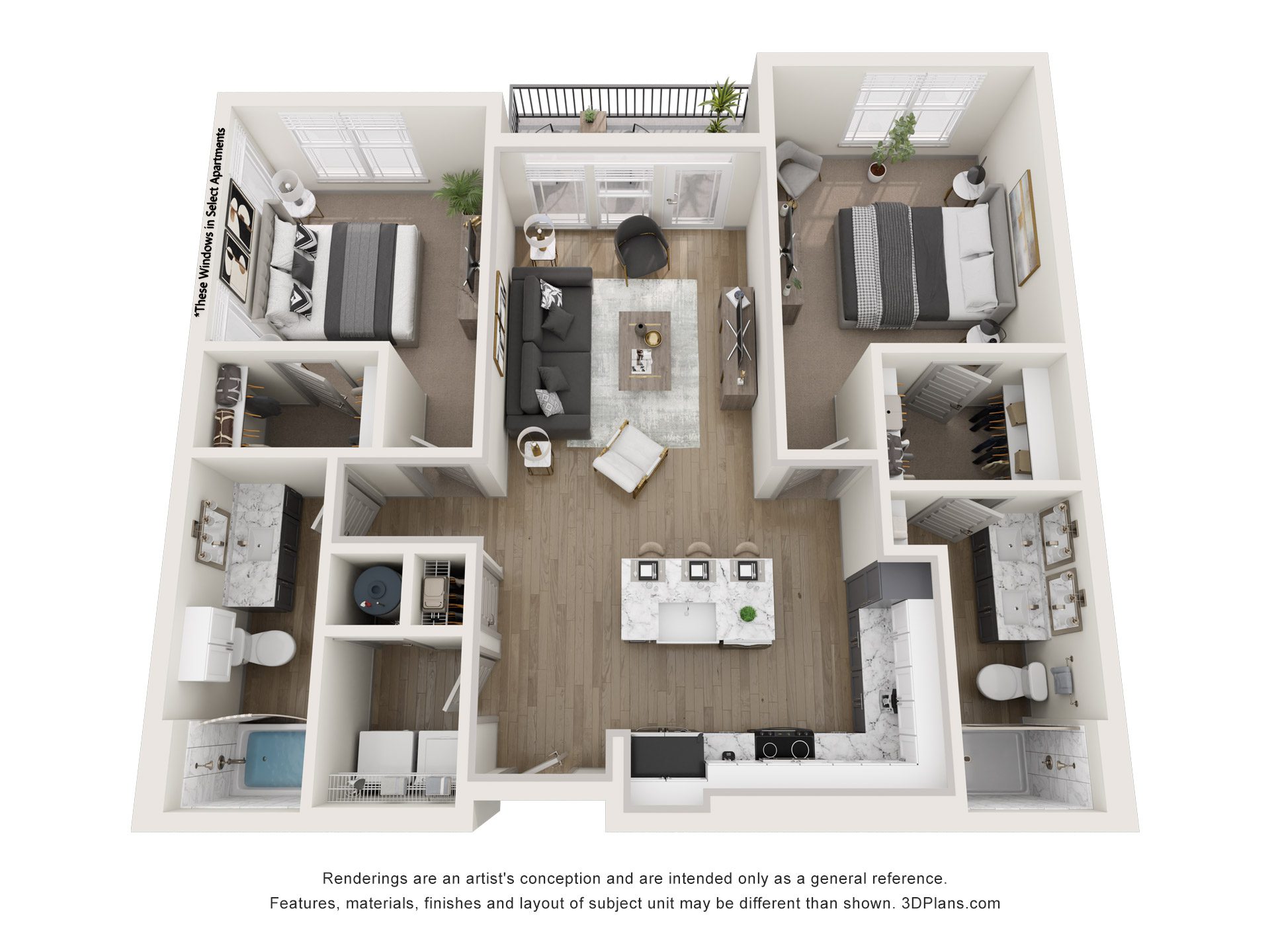 Our beautiful apartments all feature oversized windows and ceiling fans.