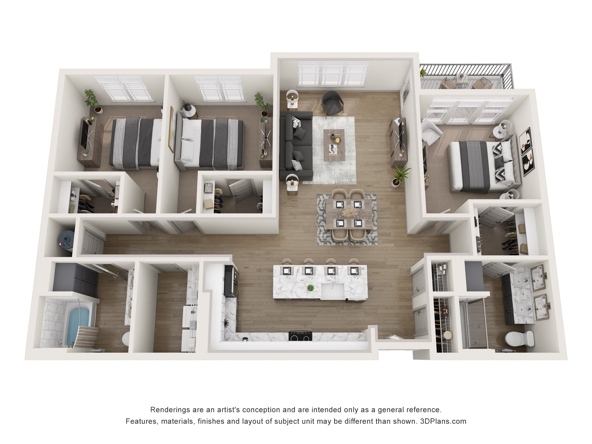 One, Two, & Three Bedrooms